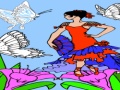 Игра Данцер Слике - раскраска для девочек. Женска играч као Палчица. Она хода на широкој цвеће окружених лептирима гиганата.